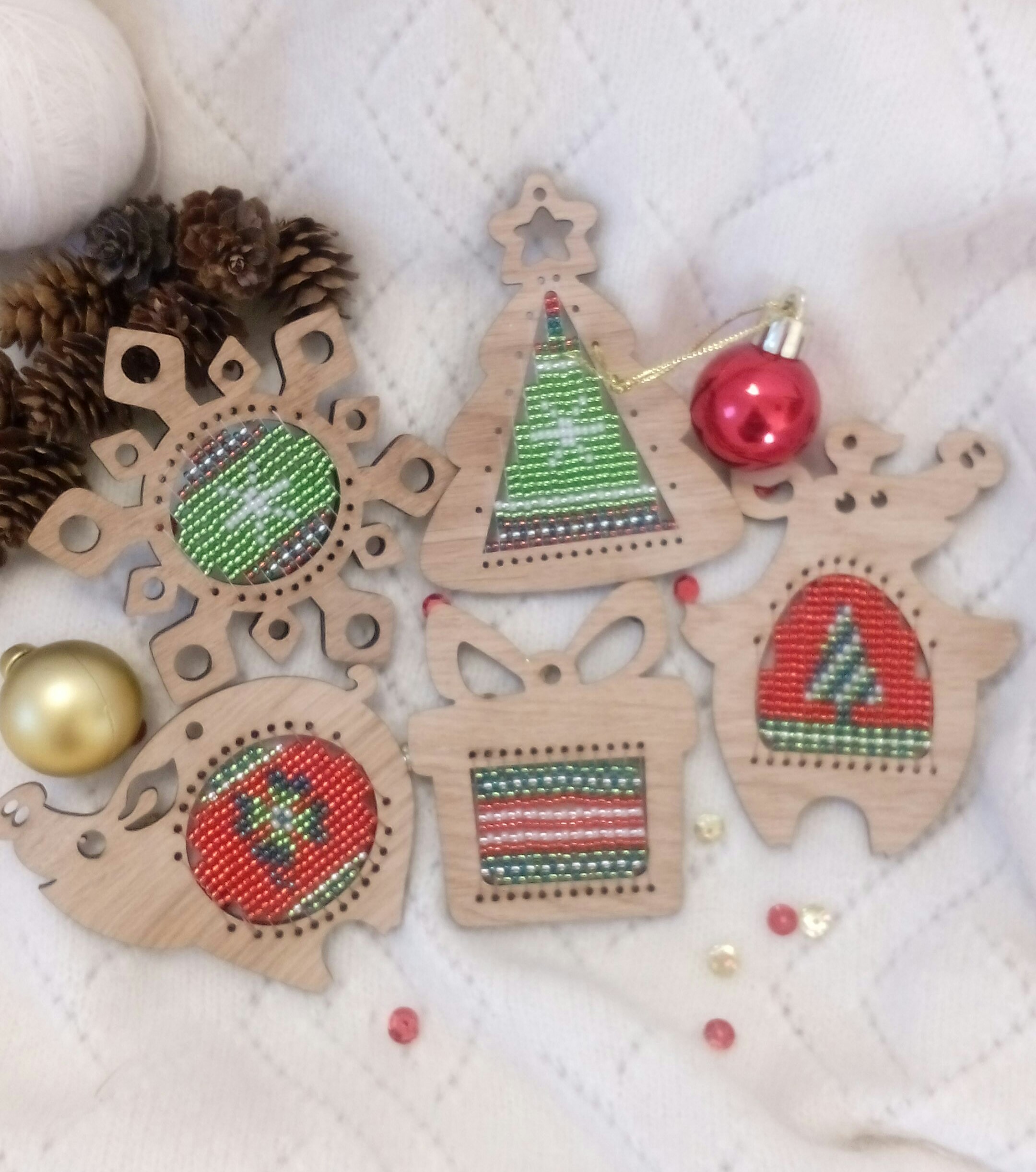 Описание изображения: | Игрушки на елку в технике бисерного ткачества |